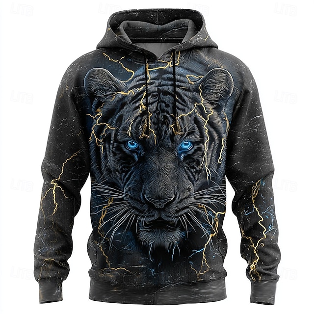 Herr Djur Huvtröjor Tröja Häftig party Ledigt Långärmad Rund hals Huva Streetwear Nattklubb Blå Gul Purpur Grön Snörning Grafisk Höst Vinter Designer S M L XL XXL XXXL #9841376