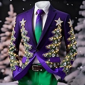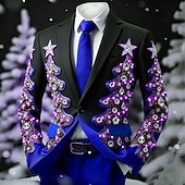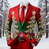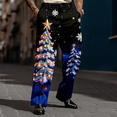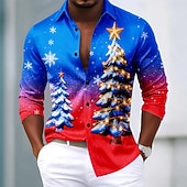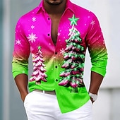 Jul Herr Julgran Polo Långärmad Polotröjor Kavajslag Ledigt Helgdag Dagliga kläder Festivalkläder 3D-utskrift Quarter Zip Polo Vår Höst Vinter Blå Sjöblå Rubinrött #16275900