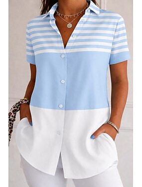 Dam Skjorta Knappar Mönster Grafisk Geometrisk Randig Vintage Dagligen Stylish Kortärmad Tröjkrage Vanliga toppar Ledigt Dagligen Blå Vit Gul Rodnande Rosa Sommar Vår