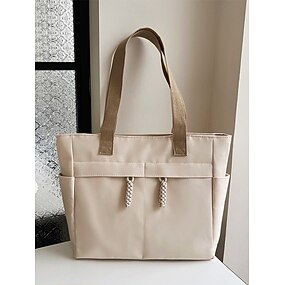 Stor damväska i canvas med flera fickor – avslappnad och lätt axelväska för arbete, skola, resor och dagligt bruk