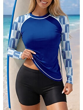 Dam "Dykdräkt, Baddräkt" Rash-guards Tankini-baddräkter Geometrisk 2 st Avtagbar dyna Boyleg UV Solskydd UPF50+ Elastisk Långärmad Badkläder Hudsjukdomsvakt Surfing Paddling Vattensport Sommar