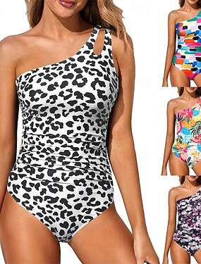 Dam Badkläder En bit Monokini Baddräkt Nät Magkontroll Hög midja Smal Öppen rygg Semester Standkläder Leopard Löv V-hals Ärmlös Baddräkter