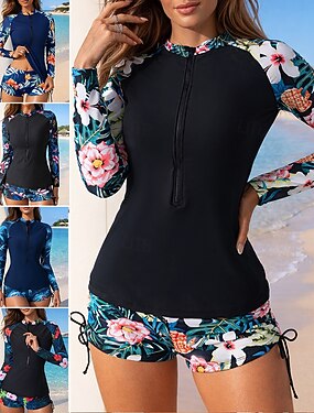 Dam Rash-guards Baddräkt Baddräkter Lappverk Tropisk Dragkedja Knälånga ben UV-skydd Snabb tork Hög Elasisitet Långärmad Badkläder Baddräkt Surfing Snorkelfenor Simmning Sommar
