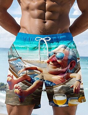 Herr Tecknat Gammal man Badshorts Boardshorts Medium Midja Hawaiisk Rolig Strandsemester Sidfickor Mesh foder Elastisk dragsko i midjan Designer Kläder