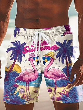 Herr Boardshorts Badshorts Tropisk Tryckt Snörning Mesh foder Med fickor Snabb tork Lättvikt Boardshorts Baddräkt Surfing Strand Vattensport Sommar