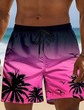 Herr Kokosnötsträd Gradientfärg Tropiska växter Badshorts Boardshorts Medium Midja Hawaiisk Strandsemester Sidfickor Mesh foder Elastisk dragsko i midjan Designer Kläder
