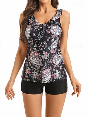 Dam Rash-guards Baddräkt med blommönster Tankini-baddräkter Geometrisk Färgblockerande 2 st Avtagbar dyna Boyleg UV Solskydd UPF50+ Elastisk Ärmlös Badkläder Surfing Paddling Vattensport Sommar