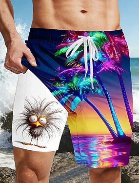 Herr Kokosnötsträd Tropiska växter Fodrade shorts 2 i 1 simshorts Badshorts Medium Midja Hawaiisk Semester Helgdag Standkläder Sidfickor Med kompressionsfoder Elastisk dragsko i midjan Designer Kläder