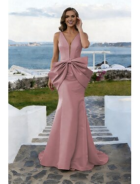 Sjöjungfru trumpet Svepsläp Golvlång Festklänning Formell klädsel Balklänningar Kvälls klänningar Balklänning Formell klädsel Elegant Ärmlös V-hals Bröllop Formell med Rosett(er)