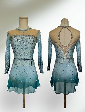 Klänningar till konståkning Dam Flickor Skridskor Klänningar Blå+Ljusblått Lappverk Tummen Elastan Hög Elasisitet Träning Professionella Tävling Skridskoplagg Klassisk Kristall / Strass Stenar