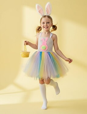 Karnevalsdräkt 2026 Klänningar Tutu Bunny Sagotema Djur Cosplay Barn Flickor Karnival Påsk Prestanda Pedagogisk klädsel Klädsel för skolevenemang Klä ut