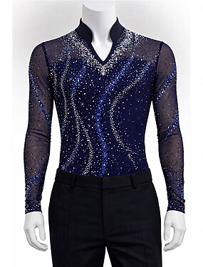 Topp för konståkning Herr Skridskor Toppar Marin Lappverk Elastisk Träning Tävling Skridskoplagg Klassisk Kristall / Strass Stenar Långärmad Skridskoåkning Konståkning