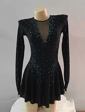 Klänningar till konståkning Dam Skridskor Klänningar Svart Lappverk Tummen Elastisk Träning Tävling Skridskoplagg Klassisk Kristall / Strass Stenar Långärmad Skridskoåkning Konståkning