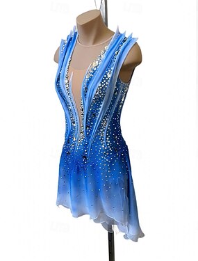 Klänningar till konståkning Dam Flickor Skridskor Klänningar Blå Tummen halofärgning Maska Elastan Elastisk Träning Professionella Tävling Skridskoplagg Håller värmen Klassisk Kristall / Strass Stenar