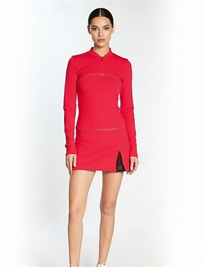 Klänningar till konståkning Dam Skridskor Klänningar Röd Lappverk Tummen Elastisk Träning Tävling Skridskoplagg Klassisk Kristall / Strass Stenar Långärmad Skridskoåkning Konståkning