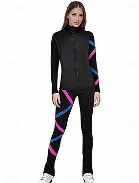 Konståkningsjacka med byxor dam flickor skridskoåkningskläder svart stretchig tränings- och tävlingskläder termisk varm kristall/strass långärmad konståkning konståkning