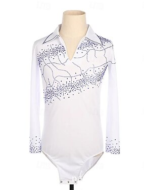 Topp för konståkning Herr Skridskor Toppar Blå / Vit Lappverk Elastisk Träning Tävling Skridskoplagg Klassisk Kristall / Strass Stenar Långärmad Skridskoåkning Konståkning