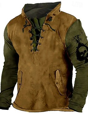 Herr Huvtröja Svart Armégrön Brun Grön Huva Dödskalle Spetsknuten Lappverk Mönster Sport & Utomhus Dagligen Helgdag Polyester Streetwear Grundläggande Ledigt Vår Höst Kläder Pull Tröjor