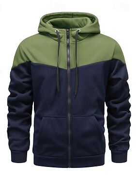 Herr Huvtröja med dragkedja Svart Armégrön Huva Färgblock Dragkedja Lappverk Sport & Utomhus Dagligen Helgdag Polyester Streetwear Grundläggande Ledigt Vår & Höst Kläder Pull Tröjor Långärmad