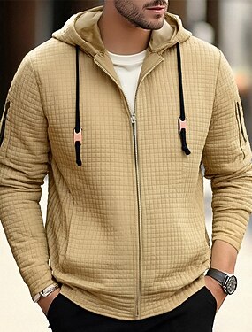 Herr Huvtröja Huvtröja med dragkedja Svart Marinblå Kaki Ljusgrå Huva Slät Snörning Ficka Sport & Utomhus Dagligen Helgdag Polyester Streetwear Grundläggande Ledigt Vår Höst Kläder Pull Tröjor