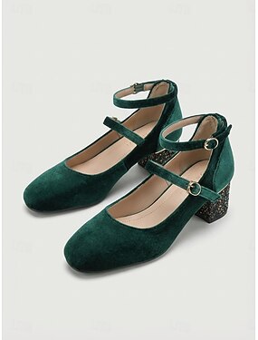 Dampumps med Mary Jane-klack i sammet, rund tå med dubbla remmar för trädgårdsfester och bröllopsgäster &dagtidsevenemang