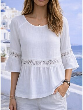 Dam Blus Dressiga toppar Spets Lappverk Multi lager Slät Elegant Halvlång ärm Rund hals Vanliga toppar Dagligen Bröllopsgäst Salvia grön Sommar Vår
