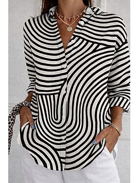 Dam Skjorta Knapp Upp Mönster Randig Semester Klassisk Ledigt Långärmad Tröjkrage Vanliga toppar Dagligen Helgdag Blå Svart Gul Rubinrött Orange Sommar Vår