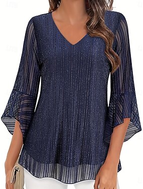 Dam Spetsskjorta Blus Spets Lappverk Slät Stylish Modern Långärmad V-hals Vanliga toppar Dagligen Utekväll Marinblå Aprikos Höst