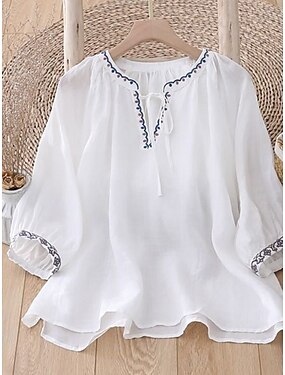 Dam Skjorta Blus Spets Ensfärgat Grundläggande Ledigt Halvlång ärm Rund hals Vanliga toppar Dagligen Arbete Bröllopsgäst Vit Sommar Vår