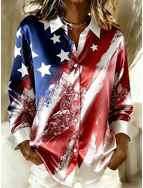 Amerikanska självständighetsdagen Dam Skjorta Satinskjorta Button Down skjorta Casual skjorta Mönster Grafisk Flagga Vintage Klassisk Ledigt Långärmad Tröjkrage Vanliga toppar Dagligen Helgdag