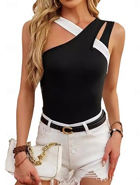 Dam Linne Ärmlös tröja T-tröja Lappverk Slå in Färgblock Mode Klassisk Ledigt Ärmlös V-hals Vanliga toppar Dagligen Utekväll Helgen Svart Sommar Vår