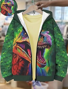 Pojkar 3D Dinosaurie Huvtröja Kappa Ytterkläder Långärmad Vår Höst Förtjusande Sport Barn 4-12 år Blixtlås Gata Dagligen Normal