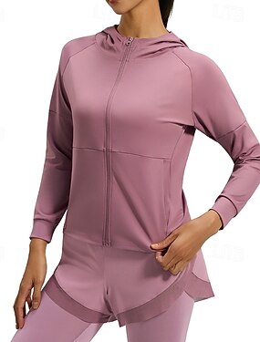 Dam Hoodie-tröja Höst Blixtlås i fullängd Långärmad Fritids- UV Solskydd Lättvikt Löpning Utomhus Joggning Kondition Purpur Sportkläder Sportkläder