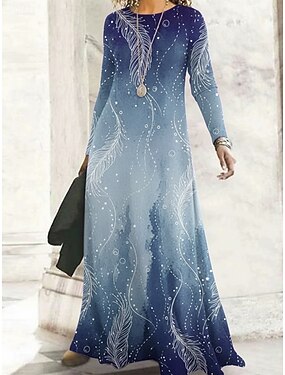 Dam Långklänning Maxiklänning Vardagsklänning Swingklänning Boho-klänning Vintage Dagligen Utomhus Helgen Normal Blommig Långärmad Rund hals Blå Vår Höst Vinter