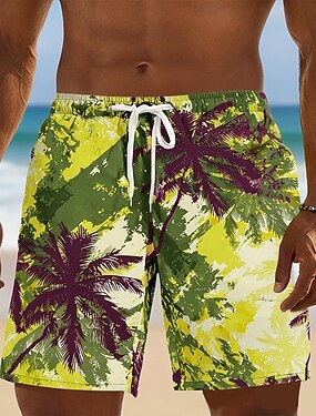 Herr Kokosnötsträd Tropiska växter Badshorts Boardshorts Medium Midja Tropisk Streetwear Hawaiisk Semester Snörning Mesh foder Elastisk midja Designer Kläder