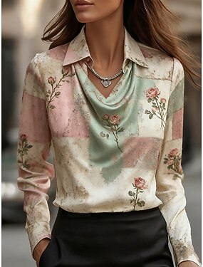 Dam Skjorta Blus Lappverk Knappar Mönster Blommig Grafisk Vintage Ledigt Långärmad Tröjkrage Vanliga toppar Ledigt Dagligen Vit Rodnande Rosa Sommar Vår Höst Vinter