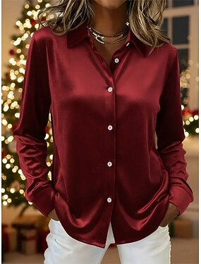 Dam Sammet Elegant Blus Ficka Knappar Ensfärgat Slät Elegant Stylish Modern Långärmad Tröjkrage Vanliga toppar Dagligen Helgdag Utekväll Rubinrött Marinblå Brun Grön Höst Vinter