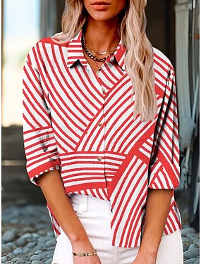 Dam Sommarskjorta Casual skjorta Knappar Mönster Grafisk Geometrisk Randig Semester Vintage Tropisk Långärmad Nedvikt Tröjkrage Vanliga toppar Dagligen Arbete Helgdag Rodnande Rosa Himmelsblå Grå