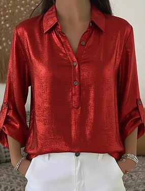 Dam Blus Ficka Knappar Slät Ledigt Långärmad V-hals Vanliga toppar Dagligen Helgdag Blå Gul Purpur Grön Kaki Sommar Vår