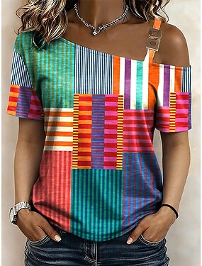 Dam Skjorta Lappverk Knappar Grafisk Geometrisk Stylish Klassisk Modern Långärmad Tröjkrage Vanliga toppar Ledigt Dagligen Helgdag Purpur Orange Sommar Vår