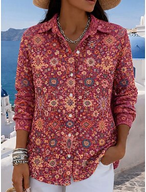 Dam Skjorta Knappar Mönster Blommig Grafisk Paisley Vintage Stylish Modern Långärmad Tröjkrage Vanliga toppar Dagligen Blå Rodnande Rosa Orange Grön Sommar Vår