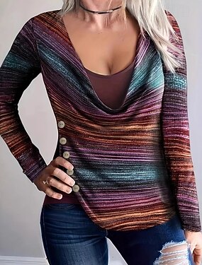 Dam Skjorta Blus Lappverk Knappar Randig Vintage Stylish Ledigt Långärmad Skorstenskrage Vanliga toppar Dagligen Helgdag Utekväll Purpur Sommar Vår Höst