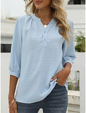 Dam Blus Knappar Ensfärgat Stylish Ledigt Kortärmad V-hals Vanliga toppar Dagligen Beige Vår Höst