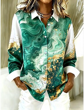 Dam Skjorta Knappar Mönster Blommig Grafisk bohemliv Vintage Klassisk Långärmad Tröjkrage Vanliga toppar Dagligen Helgdag Utekväll Grön Sommar Vår Höst
