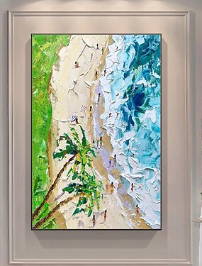 mintura handgjorda strandlandskap oljemålningar på duk väggkonstdekoration modern abstrakt tjock texturbild för heminredning rullad ramlös osträckt målning