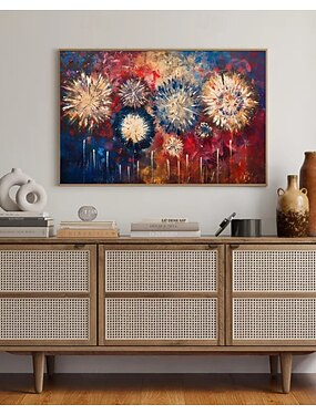handgjord oljemålning på duk väggkonst dekoration vacker xxploding fyrverkerier landskap för heminredning rullad ramlös oupptäckt målning