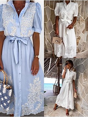Dam Kort miniklänning Boho-klänning Skjortklänning Vardagsklänning Vintage Dagligen Utomhus Strand Lös passning Blommig Kortärmad Tröjkrage Grön Sommar Vår
