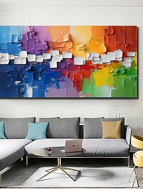 original oljemålning handmålad färgglad blockoljemålning på duk stor väggkonst abstrakt minimalistisk blå texturmålning boho vägginredning vardagsrum väggdekor