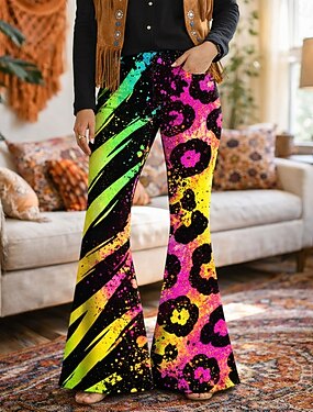 Retro / vintage Boho 70-talet Bell Bottoms byxor flare leggings Utsvängda byxor Disk Hög midja Djur Leopard Tiger Maskeradkläder Dam Halloween Karnival Semester musikfestival Festival Vuxna Byxor