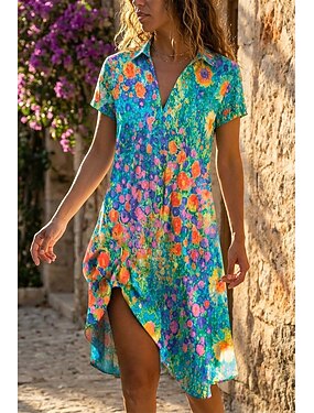 Dam Långklänning Maxiklänning Solklänning Blommig klänning Tropisk Ledigt Boho Dagligen Arbete Semester Normal Ditsy Floral Kortärmad V-hals Kavajslag Brun Regnbåge Sommar Vår Höst
